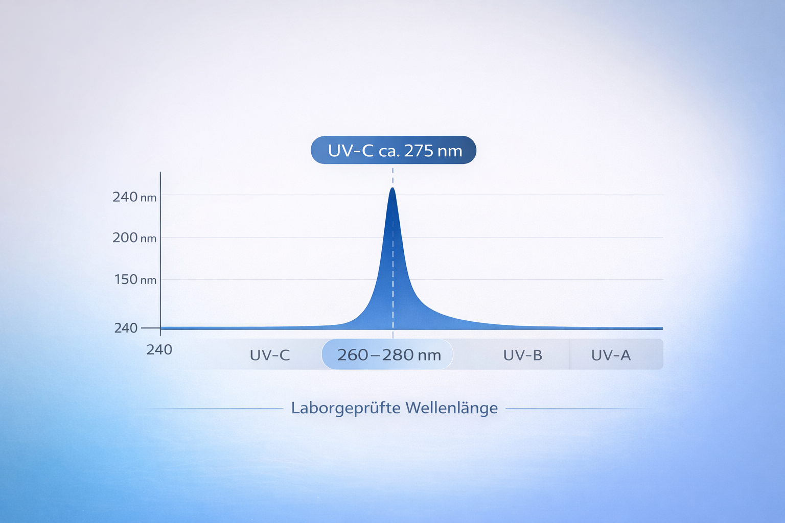 - UVC-Bereich: 260–280 nm